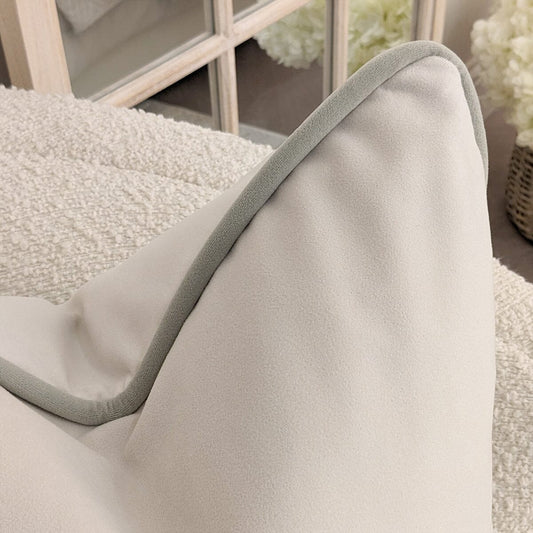 Ari Cream Velvet Cushion with Sage Green Piping - 50x50cm