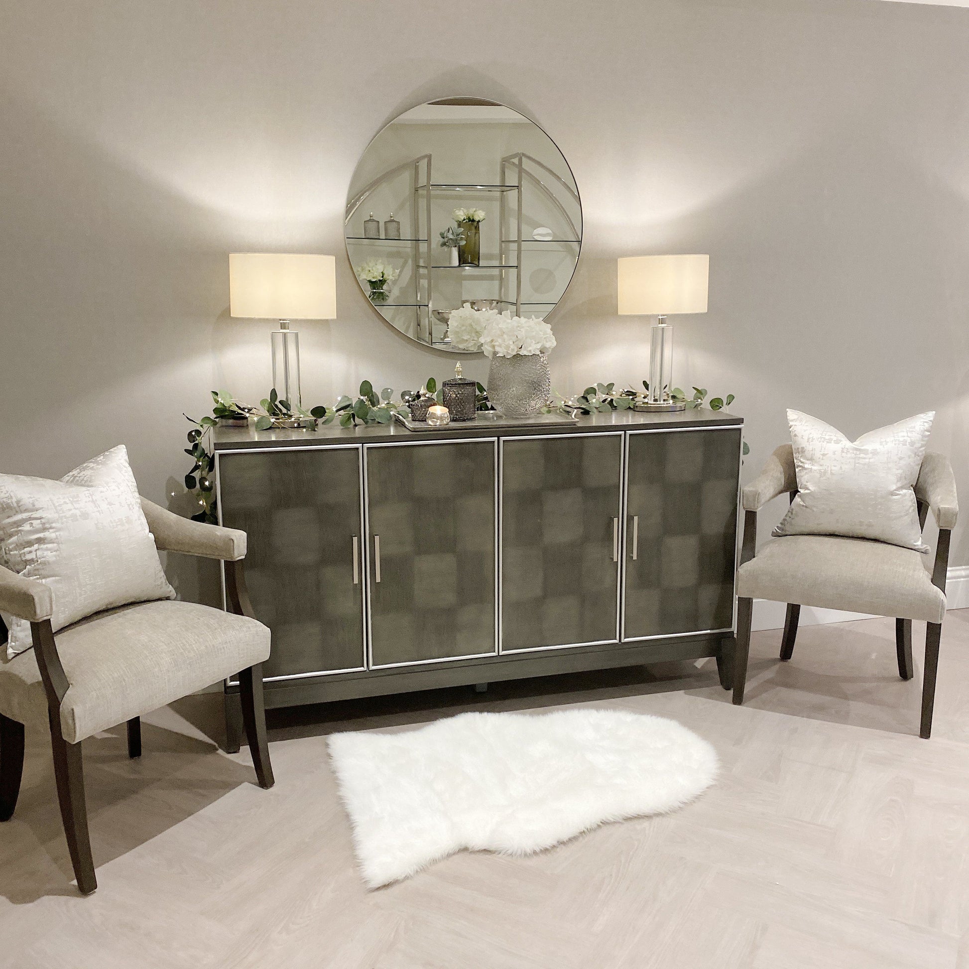 Style in a grey and silver scheme to complete the look.
